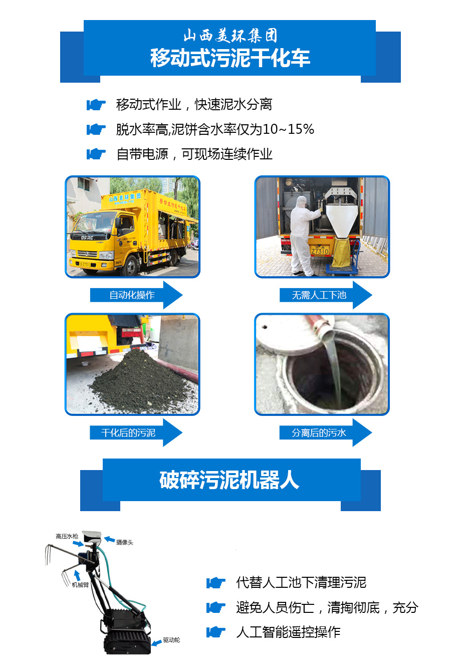 1、為管理部門提供了規(guī)范的污泥清掏和現(xiàn)場脫水、干化的方法;